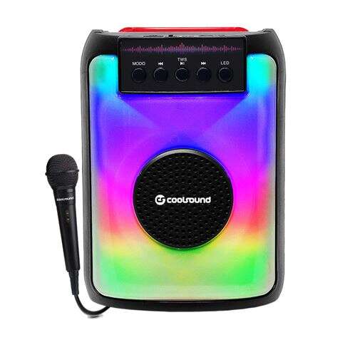 Coolsound Party Boom A380 Altavoz Portatil Bluetooth 20W 3″ – Iluminacion LED – USB, MicroSD, Jack3.5mm – Bateria 3.7V 1500mAh – Asa de Transporte – Microfono Incluido
